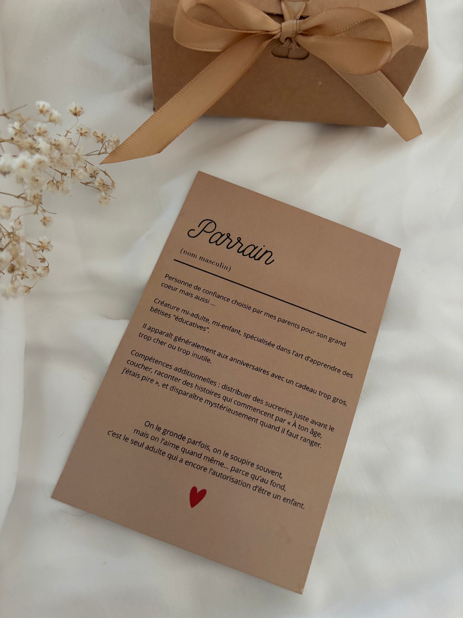 Une carte postale pleine de tendresse pour annoncer ou célébrer un parrain exceptionnel.