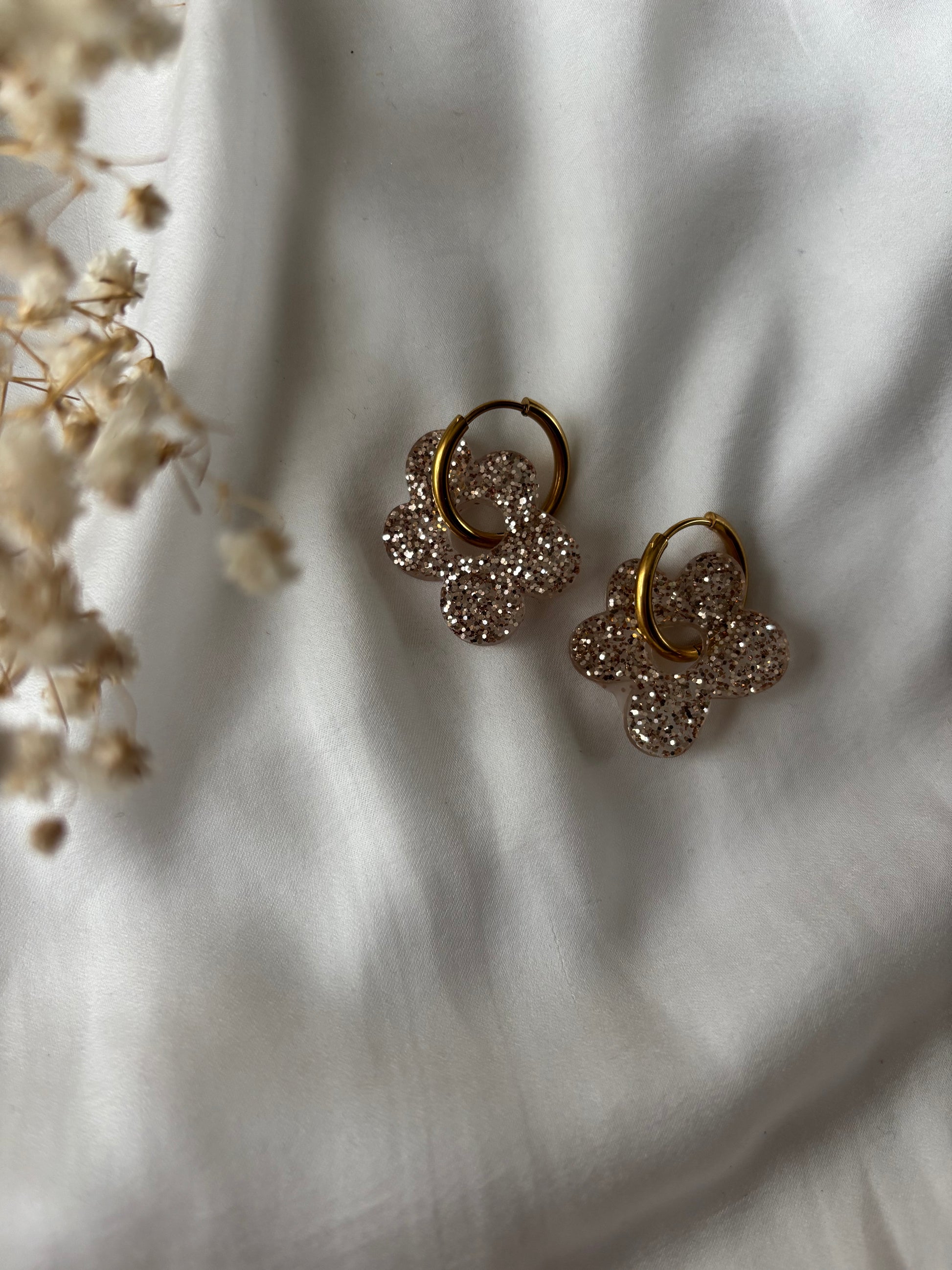 Pampilles pour créoles fleurs champagne