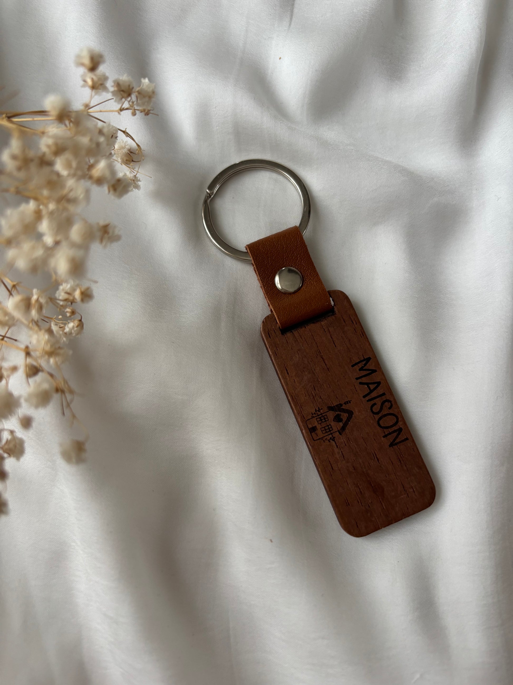 Porte clé en bois foncé maison