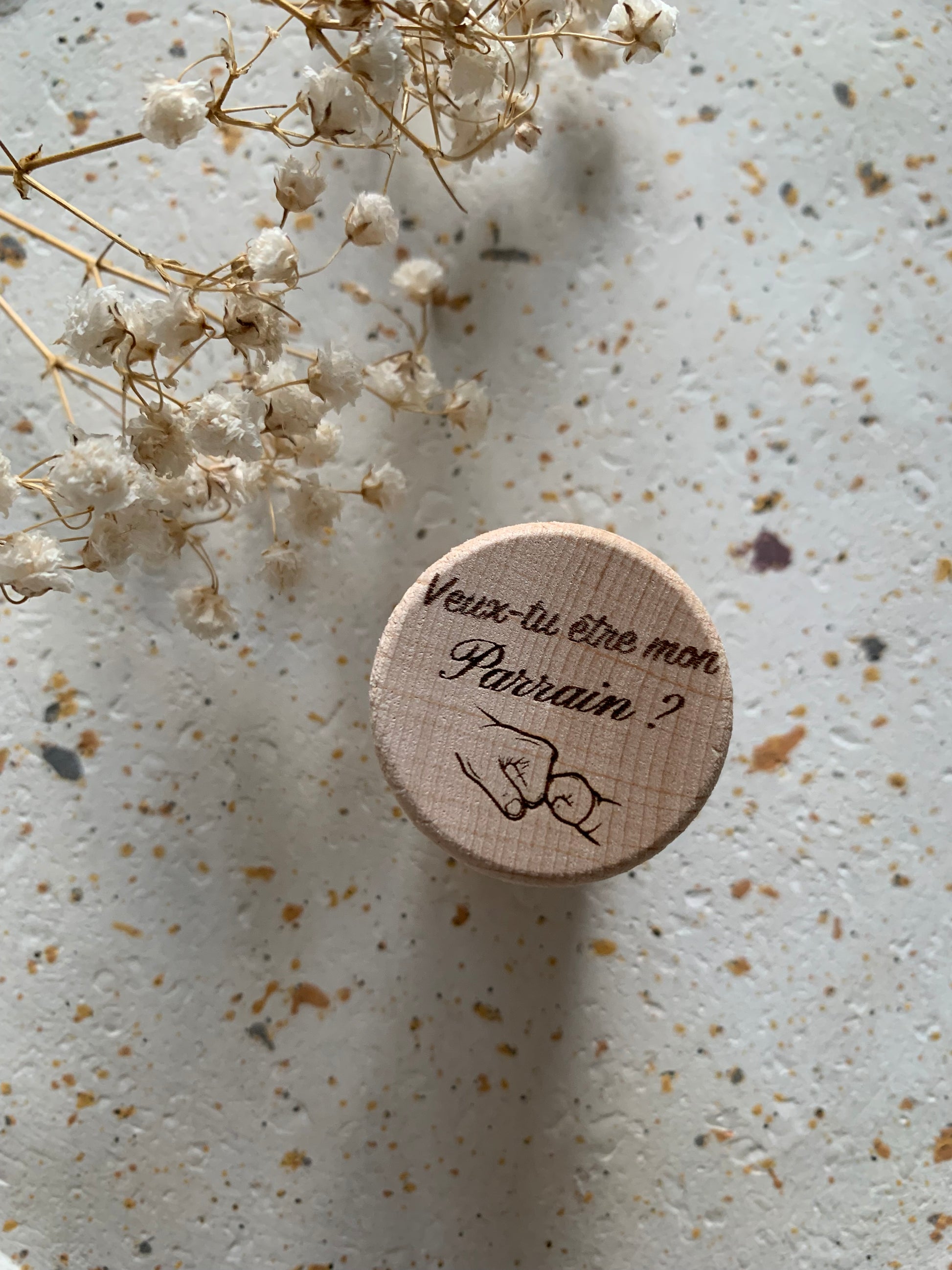 Bouchon en liège personnalisé – Demande de parrain gravé