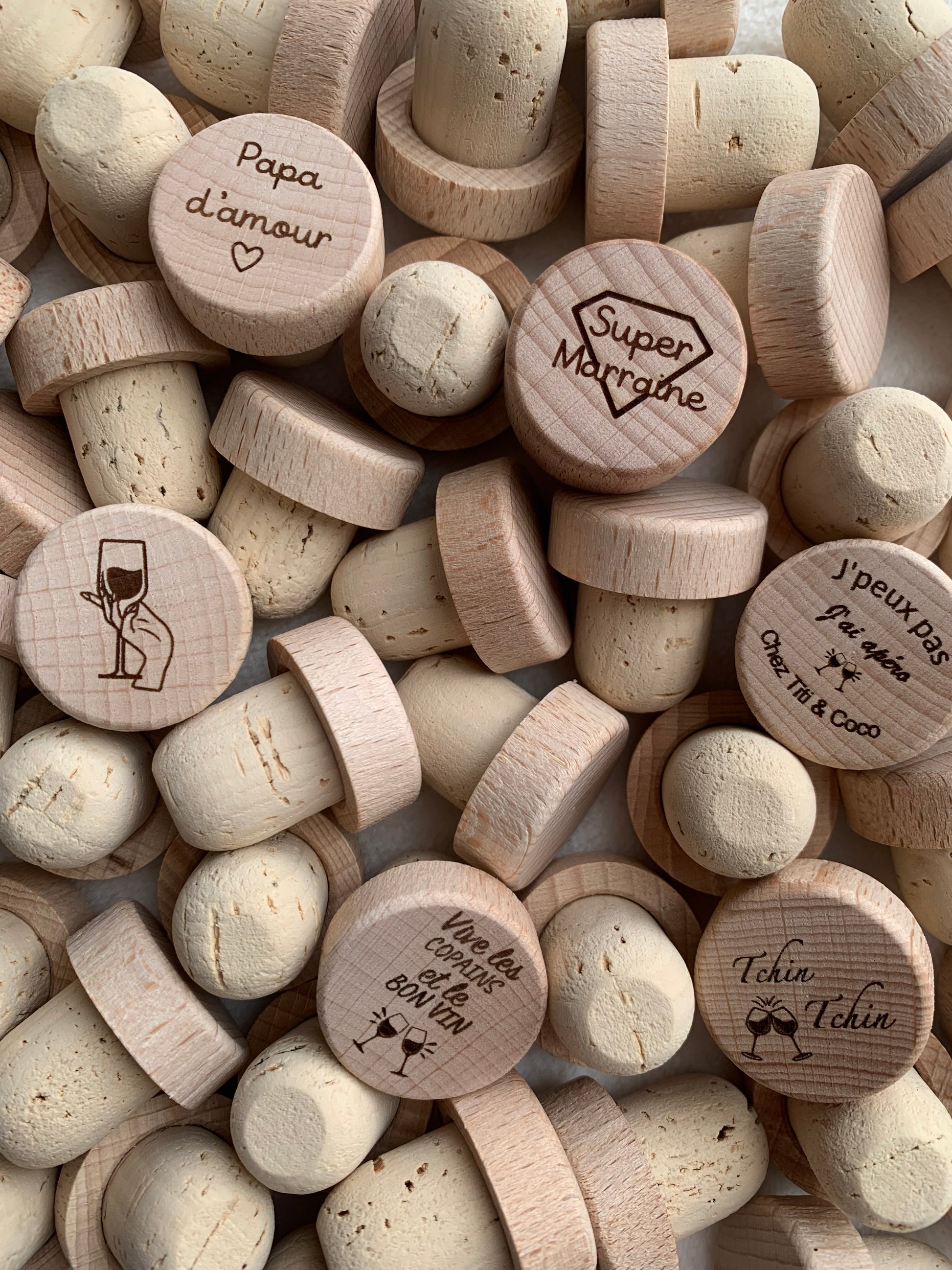 Bouchons en Bois Gravés - Apportez une touche personnalisée à vos bouteilles !