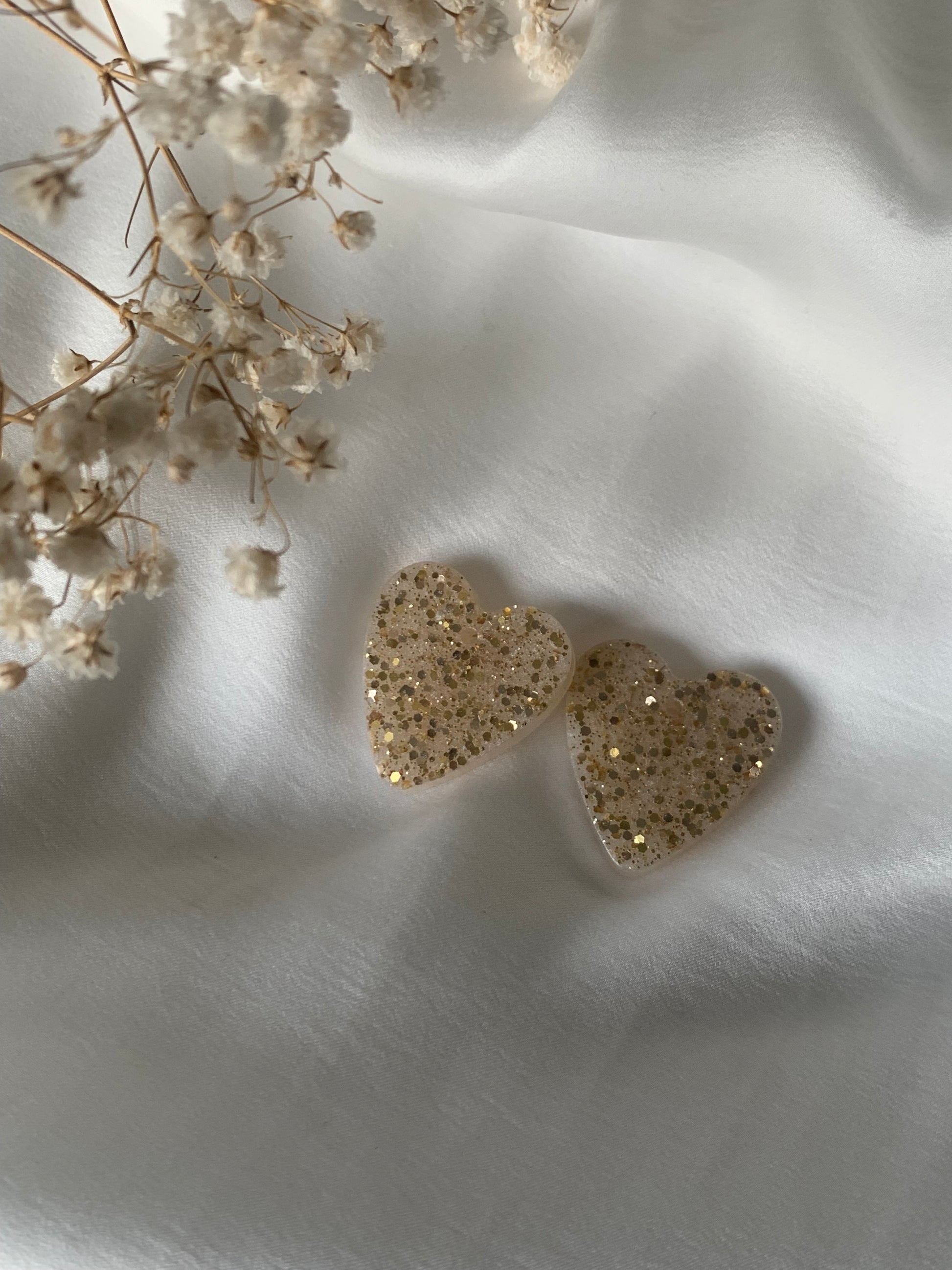 Grands coeurs imparfaits ( présentant de légers trous peu visible ) en epoxy pour créoles