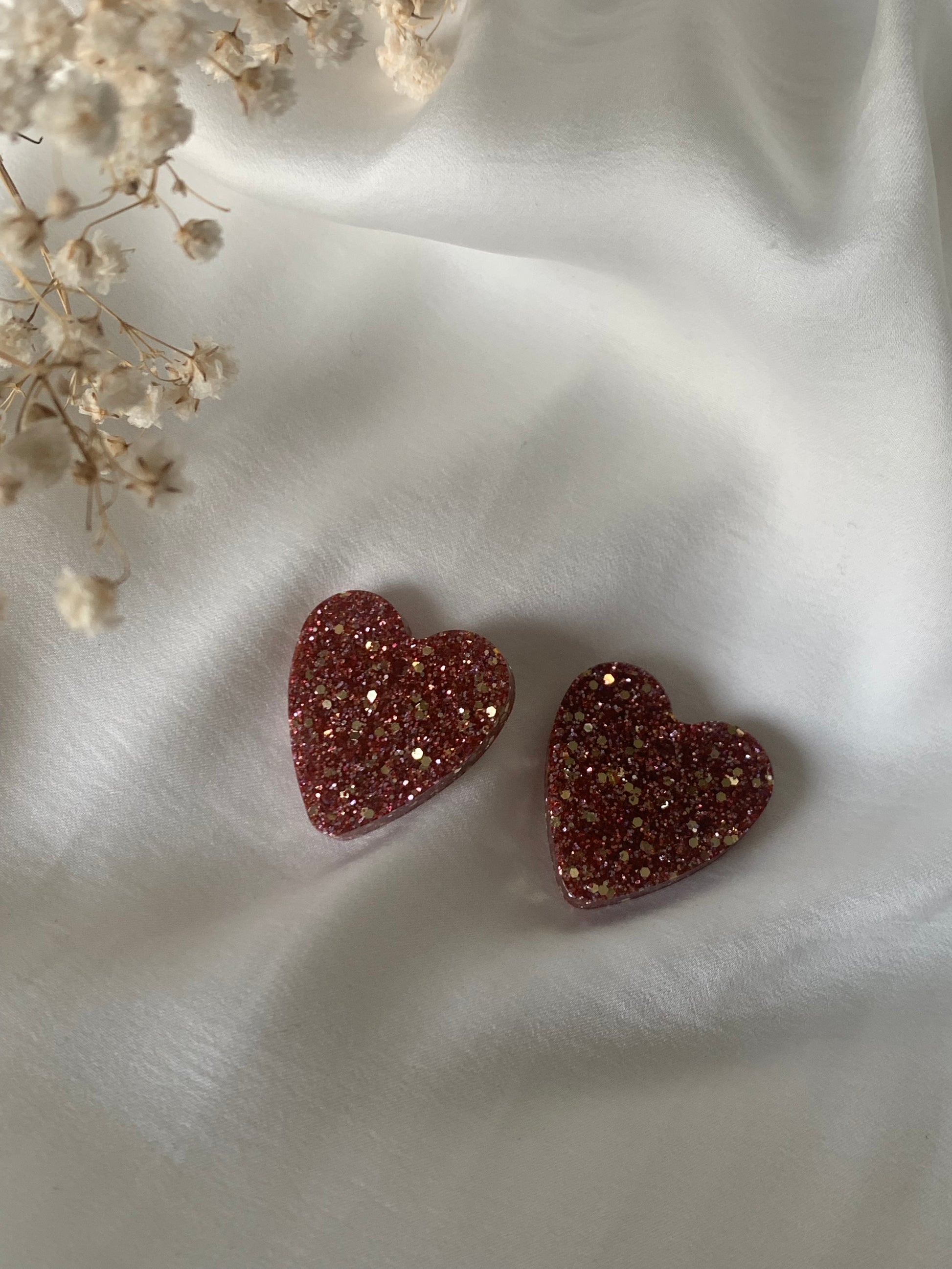Grands coeurs imparfaits ( présentant de légers trous peu visible ) en epoxy pour créoles