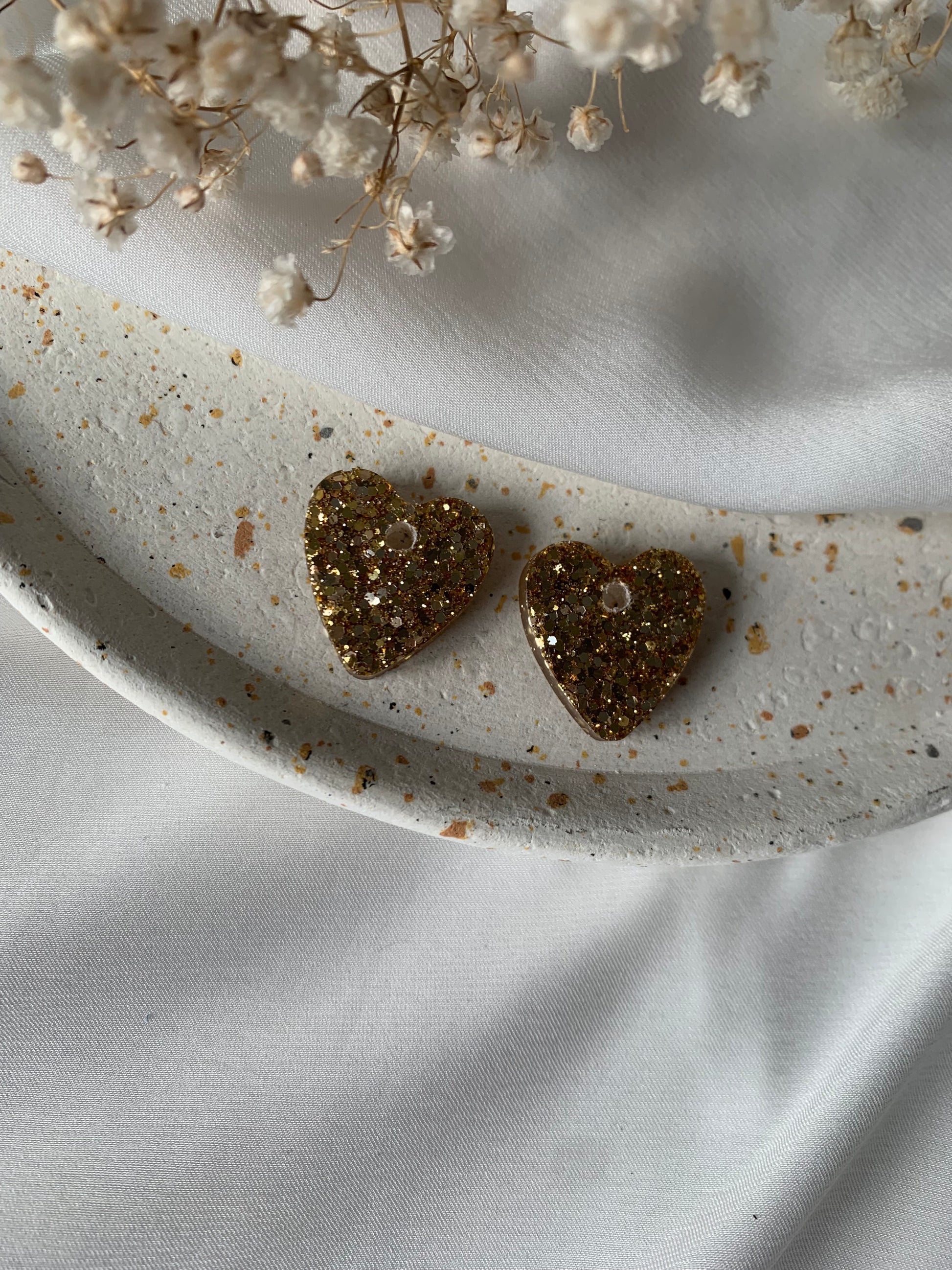 Petits coeurs imparfaits ( présentant de légers trous peu visible ) en epoxy pour créoles